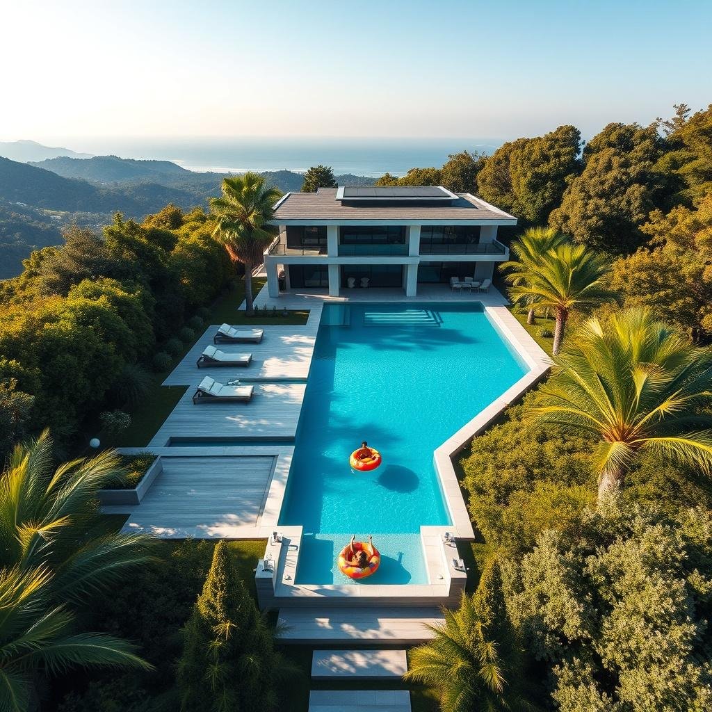 Escape to a tranquil paradise with this luxurious pool featuring a waterfall, shaded cabanas, and crystal-clear waters. Perfect for family gatherings or a serene retreat.